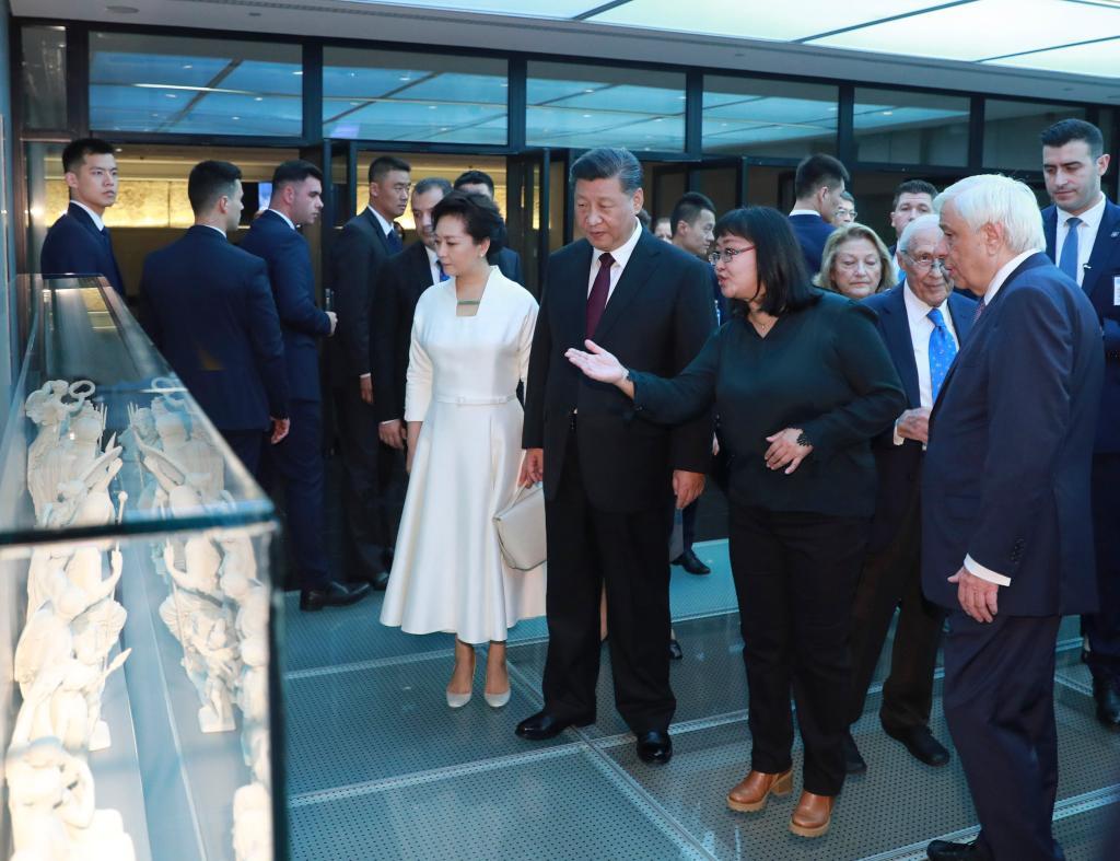 2019년 11월 12일 시진핑(習近平) 국가주석과 부인 펑리위안(彭麗媛) 여사가 파블로풀로스 당시 그리스 대통령 내외와 함께 아테네 아크로폴리스 박물관을 방문했다.