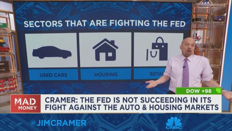 CNBC의 짐 크레이머(Jim Cramer)는 화요일 자동차 및 주택 산업의 하락 없이 연준이 인플레이션을 이기는 것은 어려울 것이라고 말했습니다.