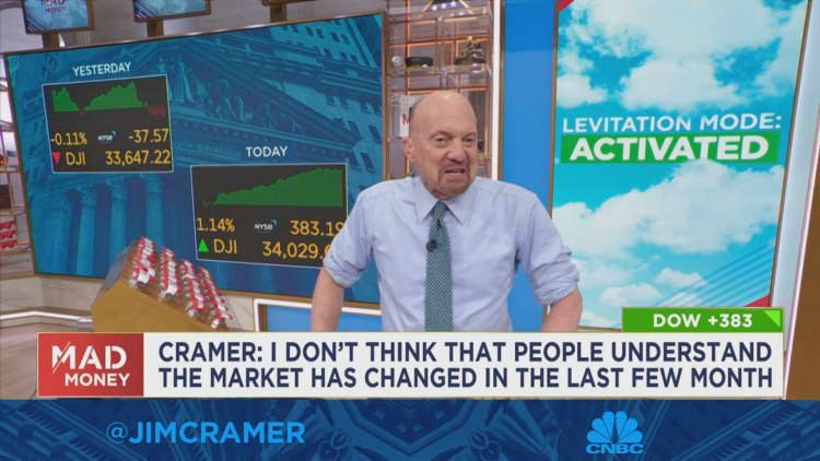 CNBC의 짐 크레이머는 목요일 ”공포의 장소”에서 주식을 파는 투자자들은 ”우리 시대의 가장 위대한 움직임”을 놓칠 위험이 있다고 말했습니다. Cramer는 2022년 약세장에서 작동했던 규칙에 의존하는 것이 더 이상 버틸 수 없기 때문이라고 말했습니다.