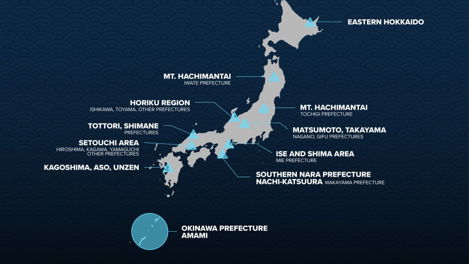보도 자료에 따르면 정부 지원 일본 관광청은 ”고부가가치” 인바운드 여행자들이 일본의 다른 지역을 방문하도록 하기 위한 ”모델 관광” 프로젝트의 일환으로 11개 목적지를 선정했습니다 .