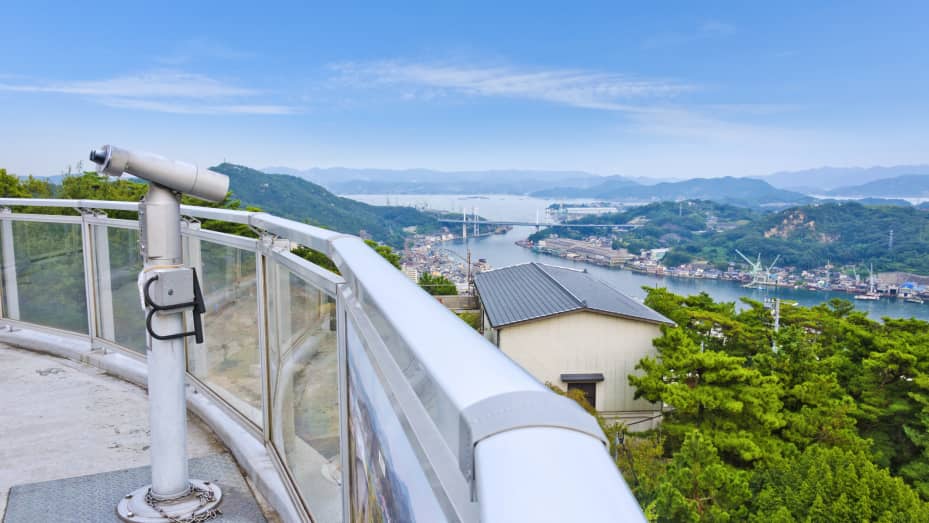 경로의 북쪽 끝에 있는 유서 깊은 항구 도시인 오노미치는 복고풍 분위기, 경사진 골목의 미로, 유서 깊은 사원으로 밤을 보낼 가치가 충분합니다. 길을 따라 있는 고요한 섬에는 전통적인 주택을 개조하여 고급 부티크 호텔로 탈바꿈한 세토다 아즈미 가 있습니다 .