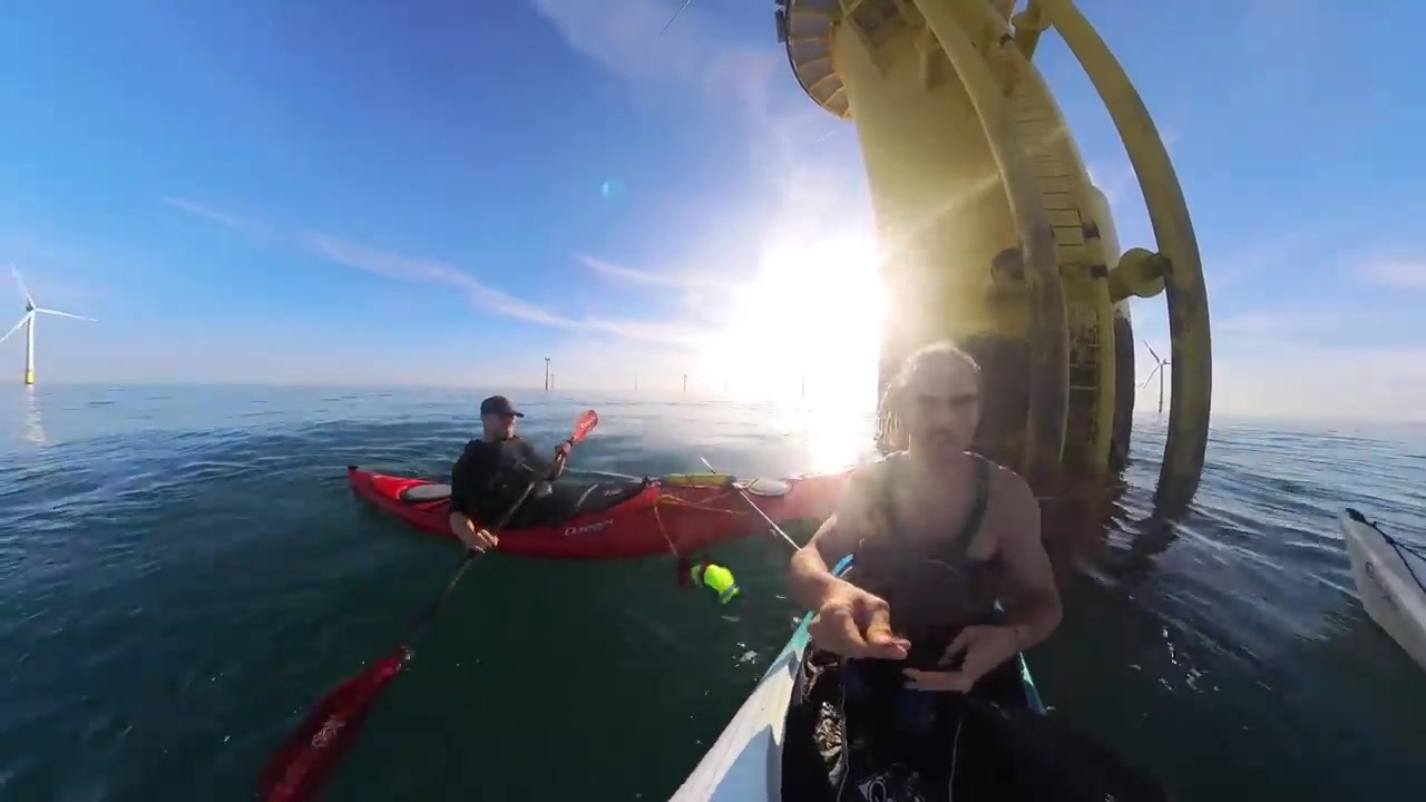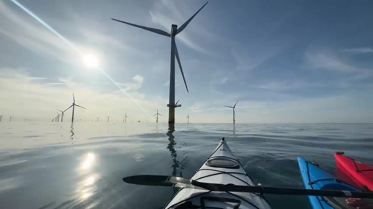 오늘은 거의 20마일에 이르는 이 풍력 발전소로 가기 위해 카약 여행에 나섰어요.