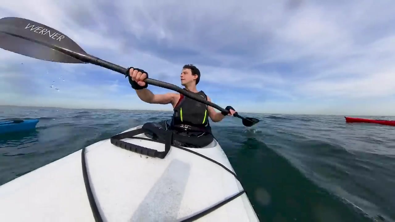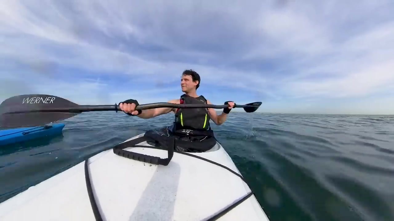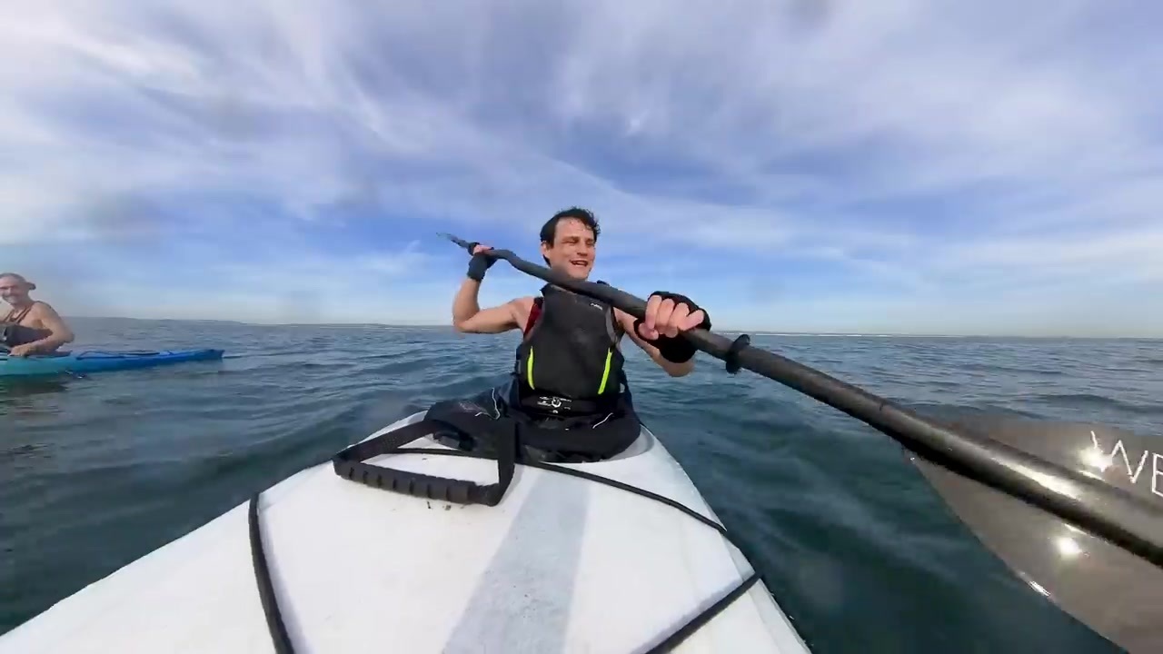오늘은 지금까지 반 마라톤 길이로 약 세마여 킬로미터 정도 패들링했다고 해요.