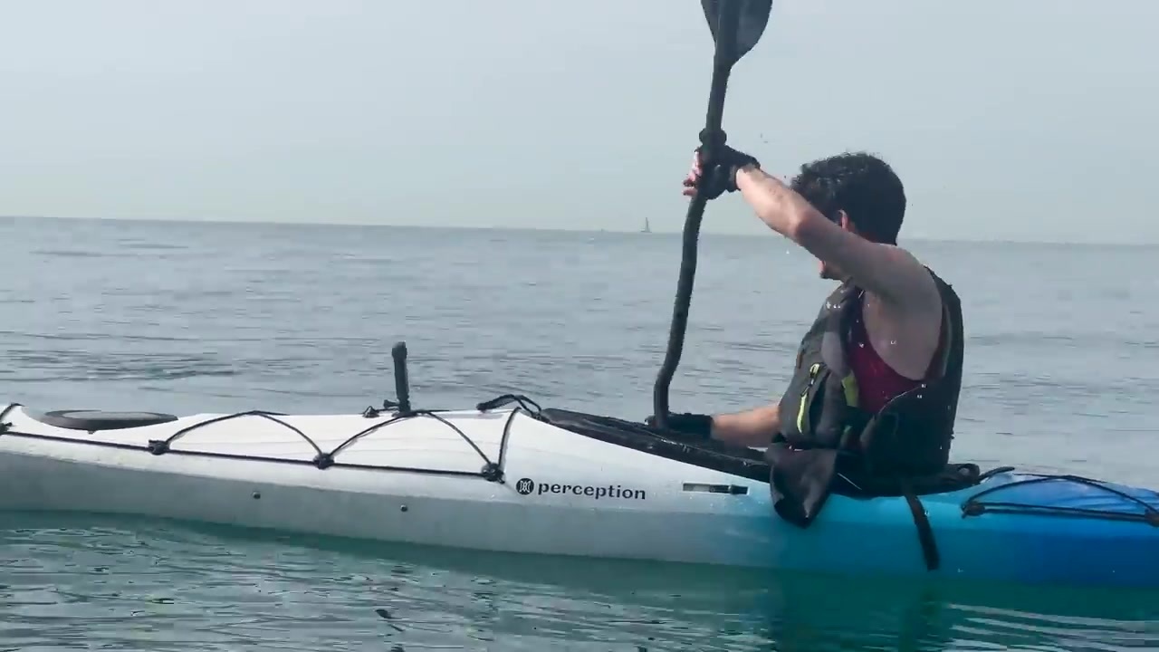 앤디는 그동안 일일히 끌었던 작은 섬을 카약을 빠르게 페달질하며 경과를 확인해요.