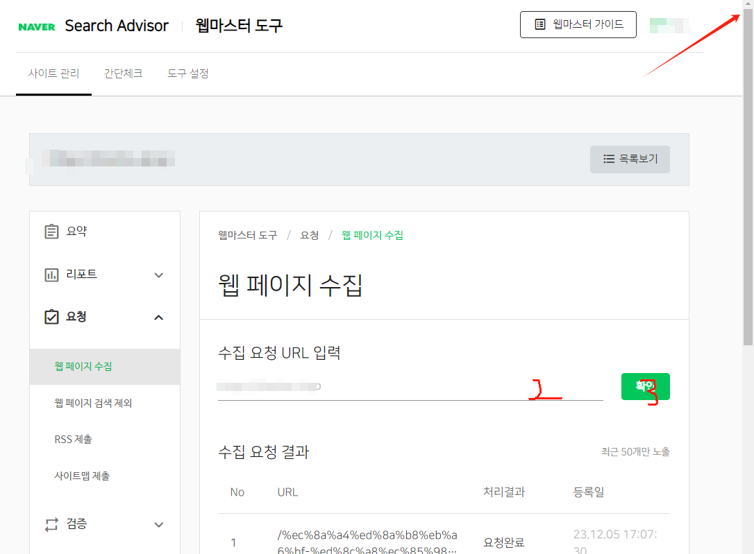 우측 상단에 스크롤 바가 맨위로 가있어야 합니다. 그래야 새로고침시 위치가 안바뀝니다