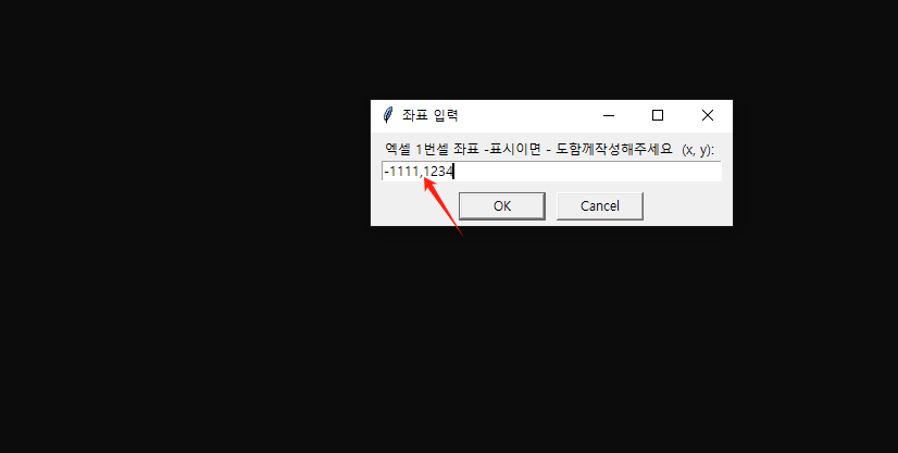 입력시 마이너스표시가 있으면 같이 입력하셔야하고 x,y 구분할때 무조건 , 쉼표 들어가야합니다