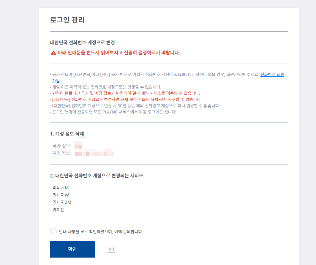 리니지m,리니지2m,리니지w, 엔씨 모바일 전화번호 각인계정 해제