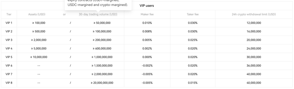 - 대량 거래자는 OKX 시스템에서 더 낮은 수수료와 인센티브를 누릴 수 있습니다.
