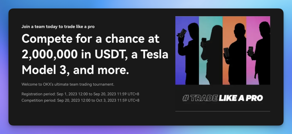 OKX 거래 대회의 예. 이는 1년에 여러 번 실행되므로 알림을 켜십시오.