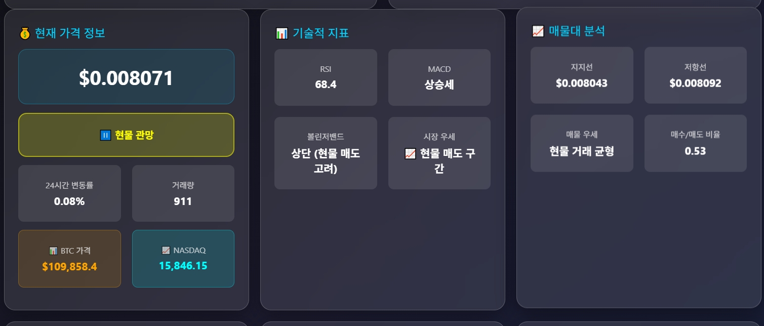 📈 BGSCUSDT 실시간 차트 ₿ BTCUSDT 실시간 차트 💰 현재 가격 정보 ⏸️ 신호 분석 중... 24시간 변동률 - 거래량 - 📊 BTC 가격 - 📈 NASDAQ - 📊 기술적 지표 RSI - MACD - 볼린저밴드 - 시장 우세 - 📈 매